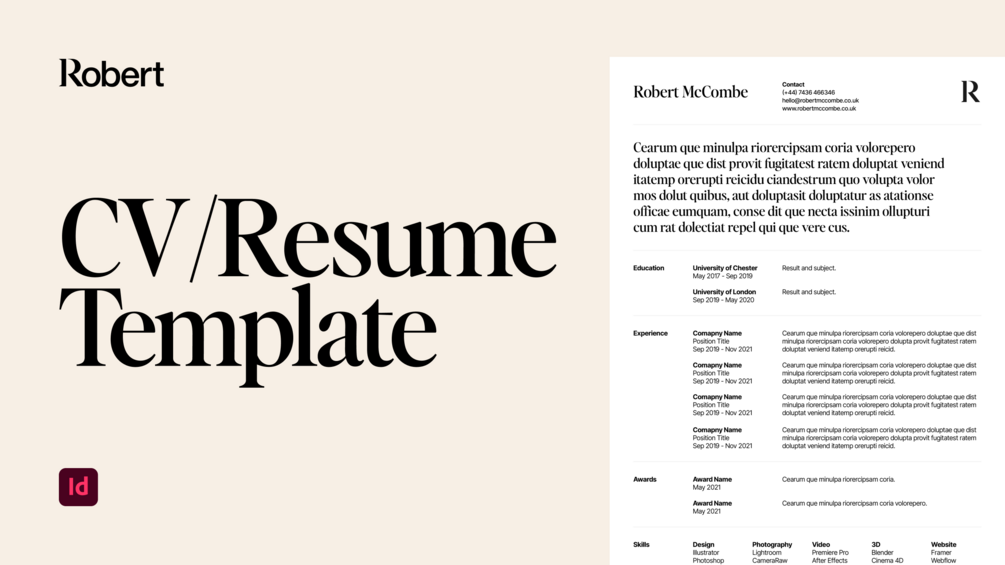Like it or not, all designers when applying for jobs will need to submit a CV/Resume. So here is a simple to follow Indesign template, based on my own CV that I have sent out.