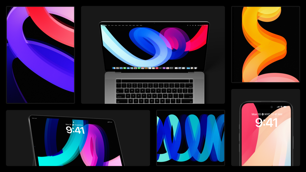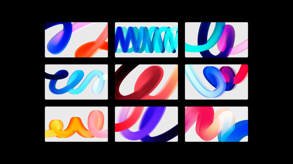 Chromatic Waves wallpaper pack, featuring 9 designs, both in black and light grey background, with a subtle noise texture.